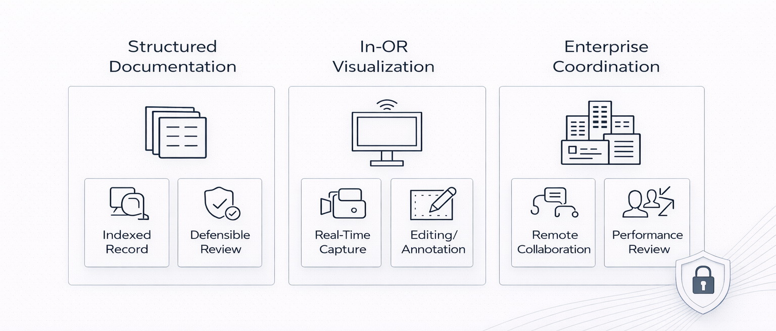 Structured case architecture enables visibility across operating rooms and procedural libraries — supporting institutional alignment and responsible analytics.